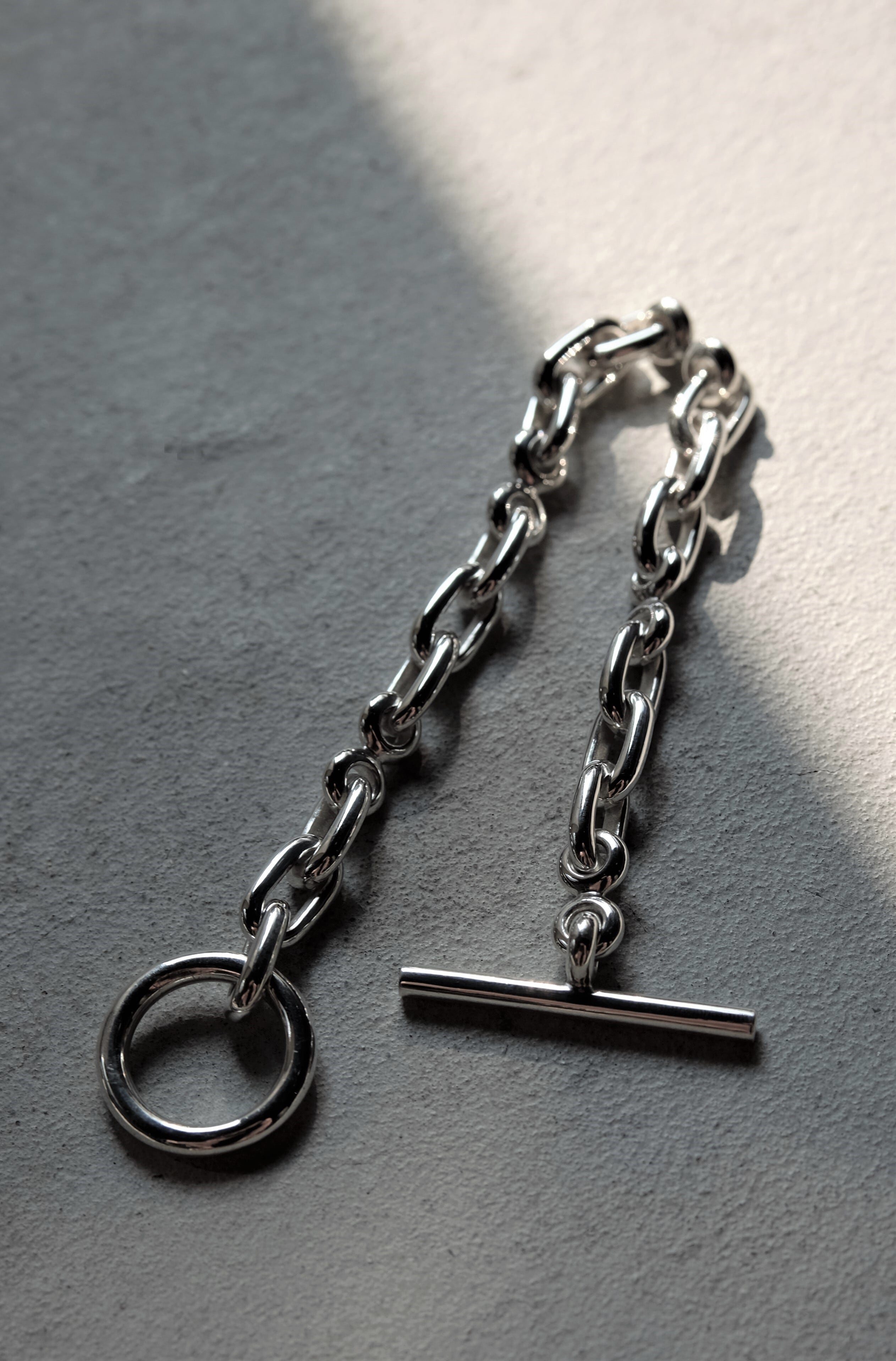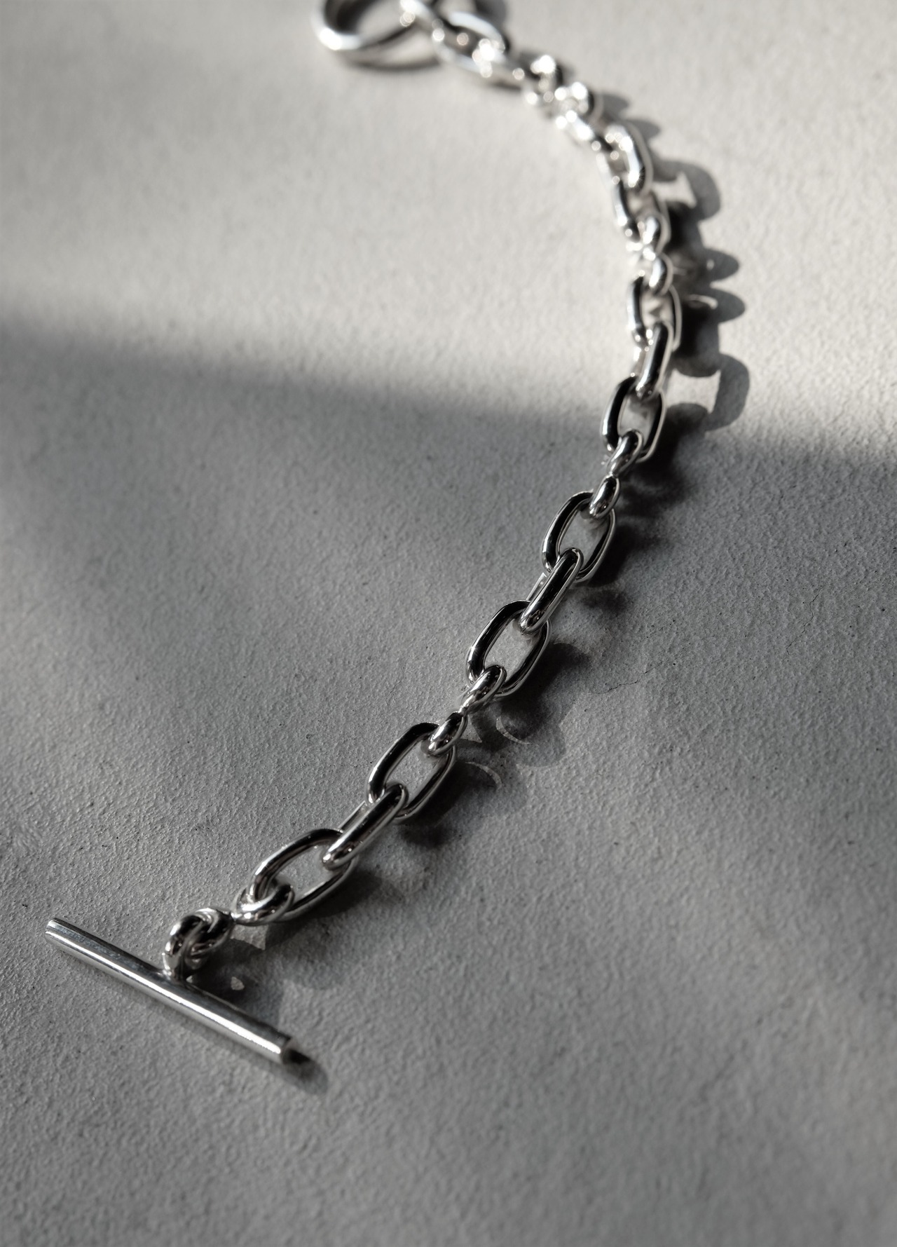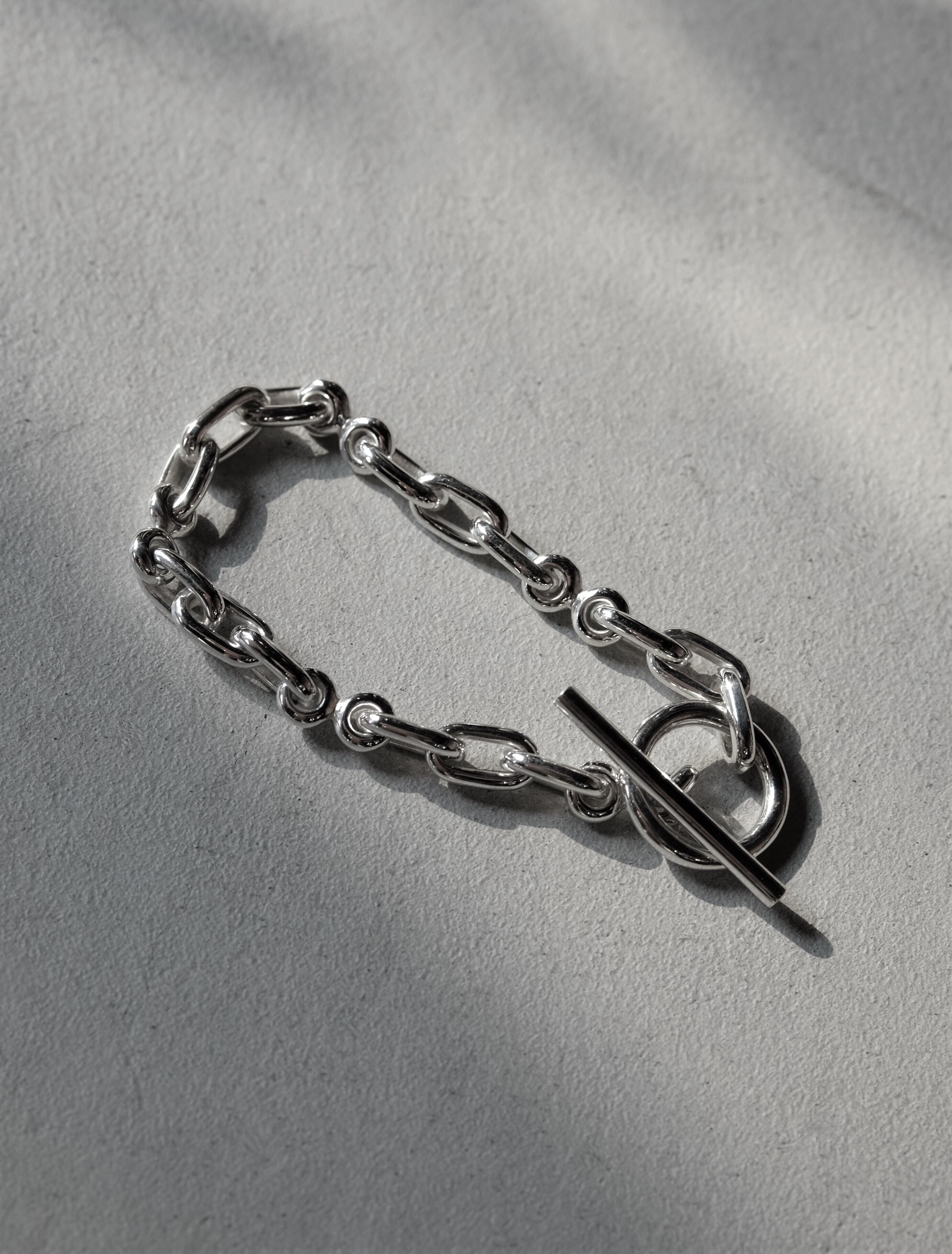 2種類のPartsを組み合わせ、フィガロチェーンのように組み上げたChain bracelet